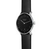 Pánské hodinky STERNGLAS Naos jsou nápadný model s výrazným minimalistickým designem. Na černém číselníku jsou dobře viditelné štíhlé stříbřité ručky a bílé čárkové indexy. Na pozici 6 hodin je umístěn ukazatel data. Číselník je chráněn odolným safírovým sklem s dvojitou antireflexní úpravou. Kulaté pouzdro je vyrobeno z nerezové oceli. S barvou číselníku ladí černý řemínek z jakostní kůže. Hodinky jsou vodotěsné do 5ATM a odolají tak sprchování. Svým vzhledem zaujmou jak v kombinaci se společenským oblekem, tak i ve volném čase.
