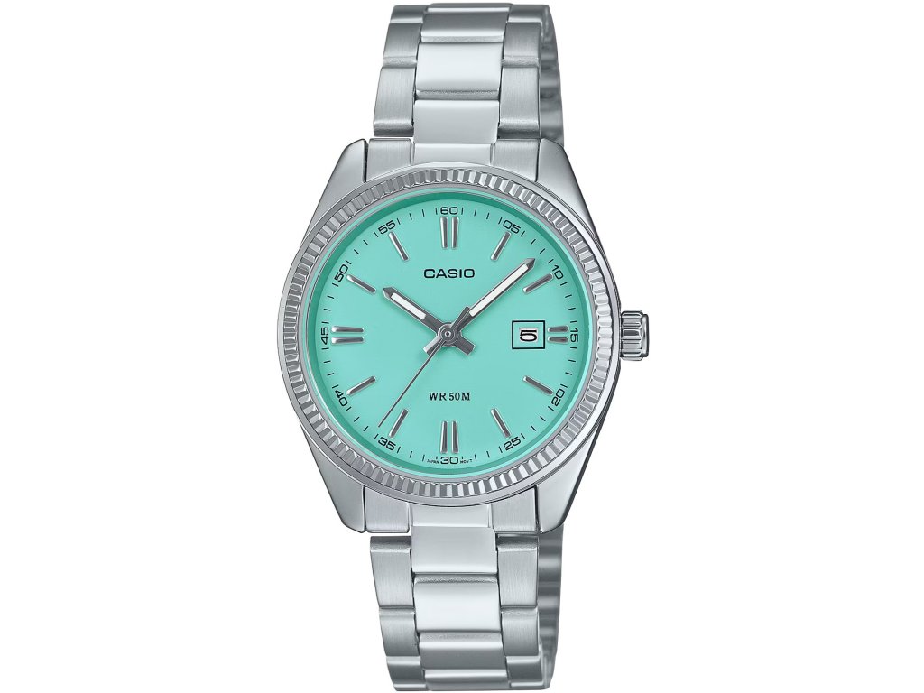 Přehledný bílý číselník s ukazatelem data na třetí hodině je chráněn minerálním sklem. Ručičky vybavené luminiscenční vrstvou po nasvícení zajišťují lepší čitelnost za zhoršených světelných podmínek.