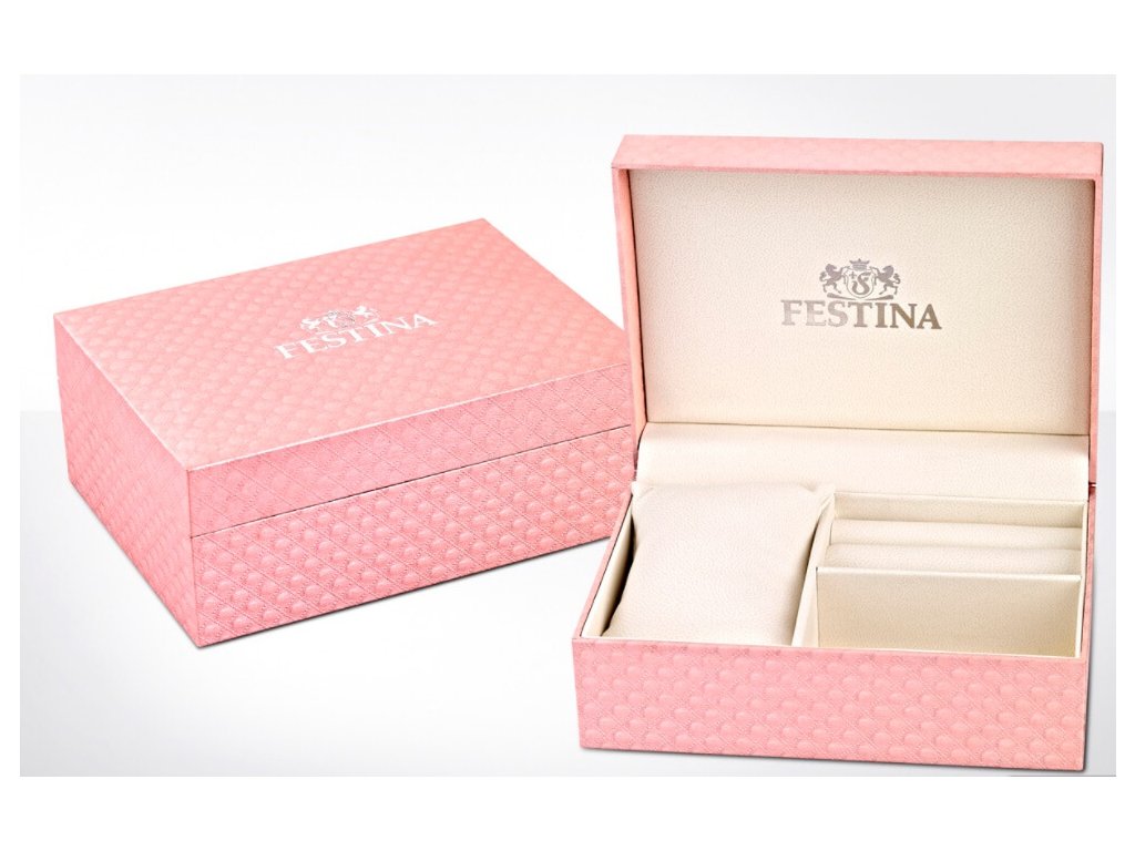 Hodinářská značka Festina byla založena ve Švýcarském La Chaux-de-Fonds v roce 1902. V roce 1984 převzal značku Miguel Rodriguez a díky začínajícímu rozmachu quartzových strojků se právě v této době začala psát nová epocha této značky.Značka Festina je částí skupiny Festina Group. Sídlo společnosti je v Barceloně a vysoce kvalitní výrobní centrum je vybudováno ve švýcarském Herbetswill.Značky Festina Group jsou uznávaným hodinářským pojmem na mezinárodní úrovni a zaujímají vedoucí postavení v oblasti středního segmentu hodinářského trhu v Itálii, Německu i ve Švýcarsku. Na francouzském a španělském hodinářském trhu zaujímá Festina Group vedoucí postavení.