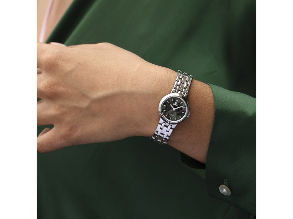 Festina Mademoiselle jsou dámské bateriové hodinky v klasickém stylu na ocelovém náramku s překlápěcí sponou.