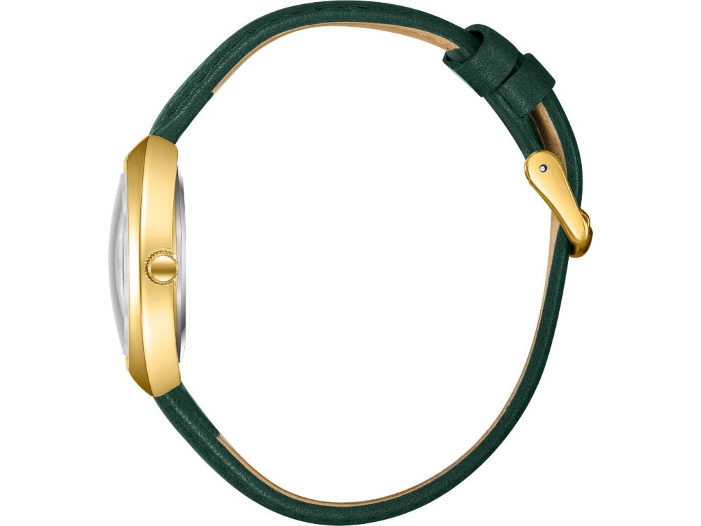 Dokonalá symbióza elegance a praktičnosti. Zelený ciferník evokující barvu smaragdu ladí se stejně barevným řemenem. Vše dotáhne k dokonalosti zlacené pouzdro. Dopřejte si kousek luxusu.