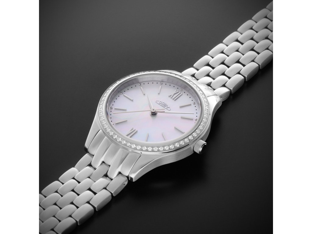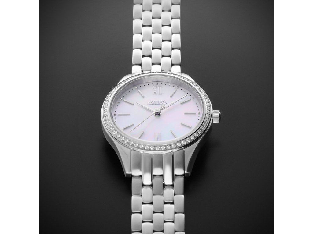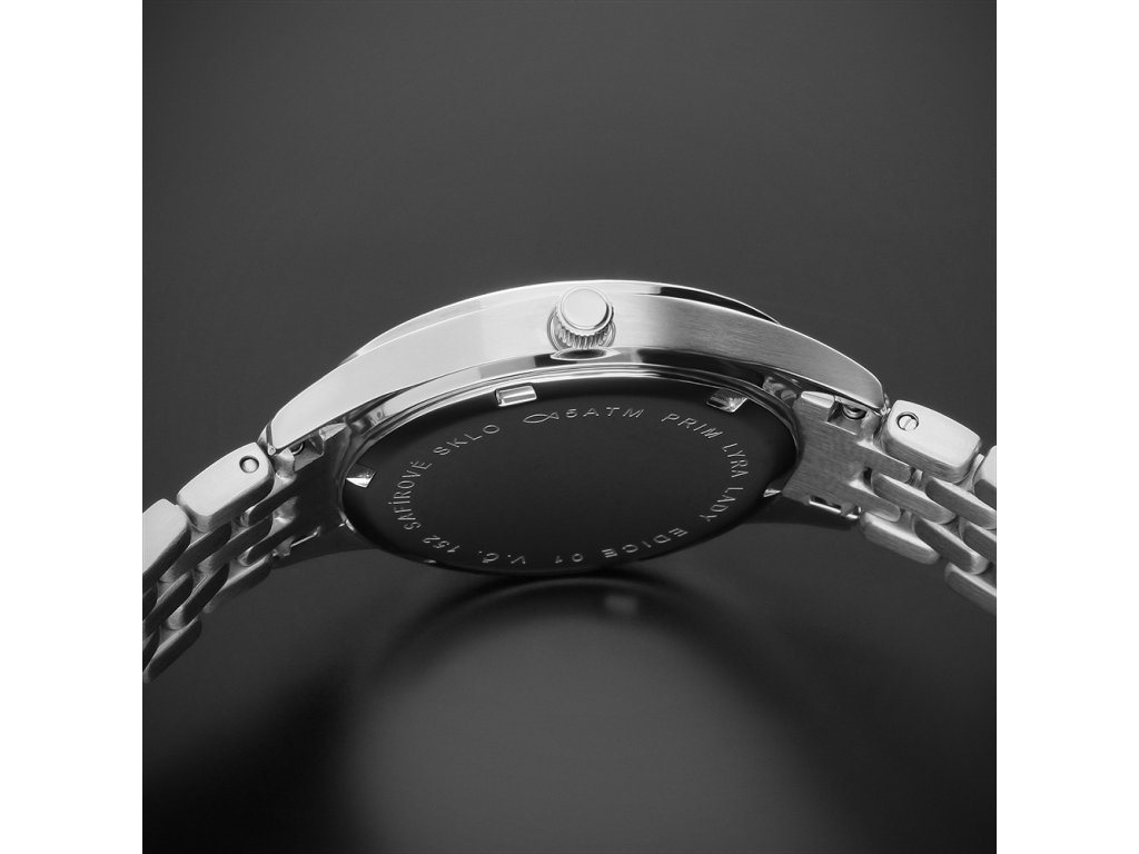 Dámské společenské hodinky PRIM Lyra s elegantním perleťovým číselníkem jsou doplněny o náramek z nerezové oceli v kombinaci matu a lesku. Safírové sklo s antireflexní vrstvou je u tohoto dámského modelu samozřejmostí.