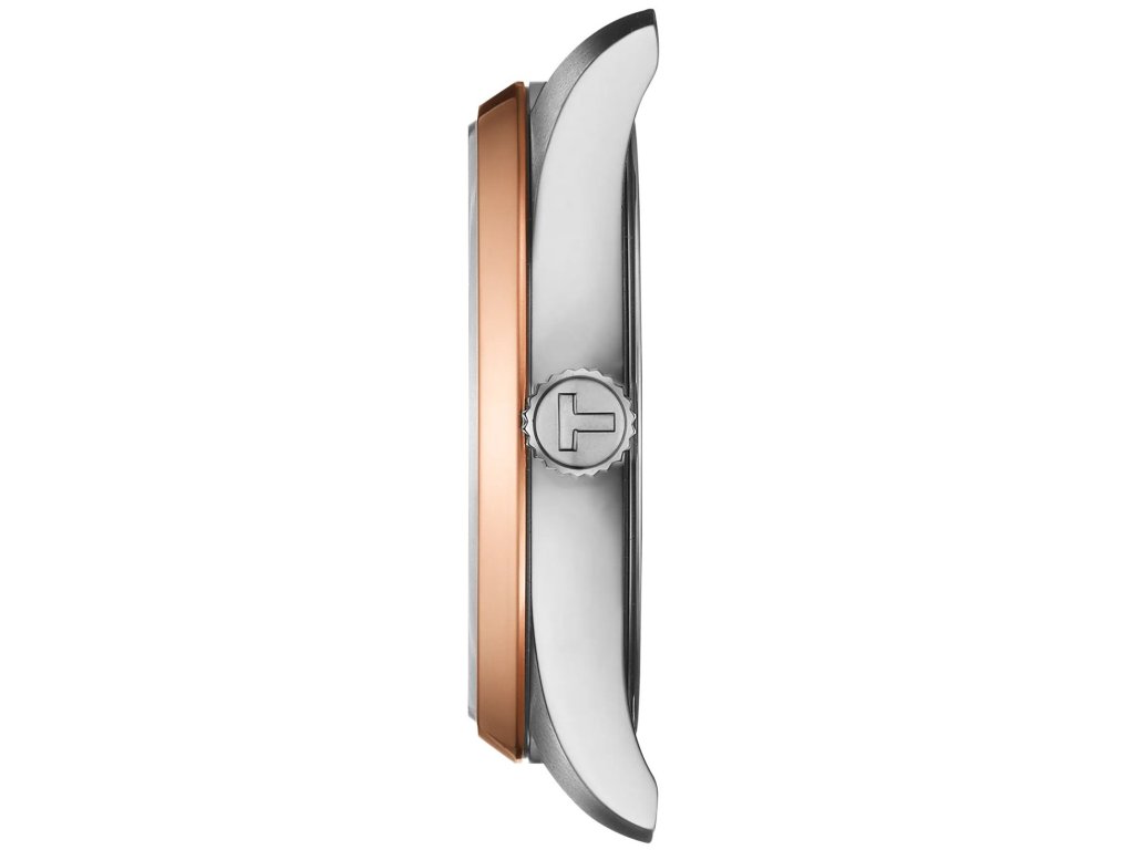 Pouzdro z nerezové oceli má průměr 34 milimetrů a lunetu s povrchovou PVD úpravou v barvě růžového zlata. Přehledný perleťový číselník s ukazatelem data na třetí hodině je chráněn odolným safírovým sklem a jeho krása vyniká zejména na přímém světle, kdy můžeme pozorovat hru barev perleti. Ručičky a indexy jsou potaženy luminiscenčním nátěrem Super-LumiNova®, který garantuje perfektní čitelnost za zhoršených světelných podmínek. Pohon hodinek zajišťuje quartzový strojek ETA F05.115 s funkcí indikace slabé baterie.