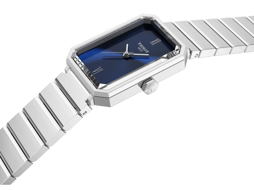 Hranaté pouzdro z nerezové oceli má velikost 21,8 x 30 milimetrů. Modrý číselník s efektem slunečního brusu je chráněn odolným safírovým sklem. Pohon hodinek zajišťuje spolehlivý švýcarský quartzový strojek s funkcí indikace slabé baterie.