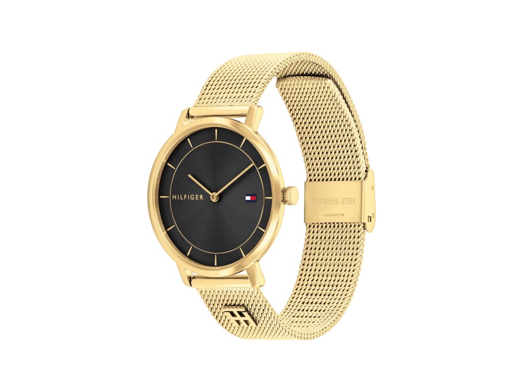 Hodinky Tommy Hilfiger Tea zaujmou kombinací zlaté s černým číselníkem. Minimalistické provedení bez číslic působí přehledně a vzdušně.