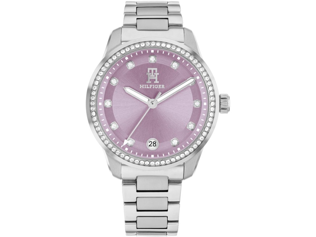 Hodinky Tommy Hilfiger Crystals zaujmou fialovým číselníkem s efektem slunečního brusu. Minimalistické provedení bez číslic působí přehledně a vzdušně.