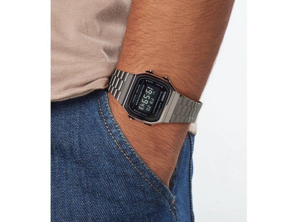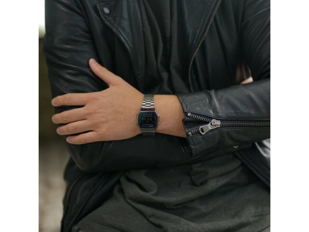 Casio Vintage jsou bateriové unisex hodinky v retro designu na ocelovém náramku s povrchovou IP úpravou černé barvy a posuvnou sponou.