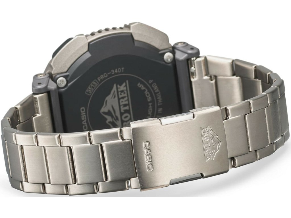 Číselník hodinek je chráněn minerálním sklíčkem a nabízí digitální zobrazení času, vedle něhož zobrazuje datum, den v týdnu, stopky, budík a spoustu dalších funkcí. Pouzdro hodinek je vyrobeno ze syntetické pryskyřice, tah je z titanu. hodinky tak dosahují velice nízké hmotnosti, Model Casio Protrek PRG340T-7ER je navíc vybaven otočnou kompasovou lunetou. Vodotěsnost tohoto modelu je 10ATM.