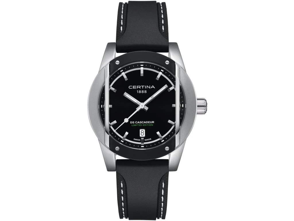 Certina DS Cascadeur 30th Anniversary Limited Edition C046.410.27.051.10 jsou pánské bateriové hodinky na černém kaučukovém řemínku s trnovou sponou.