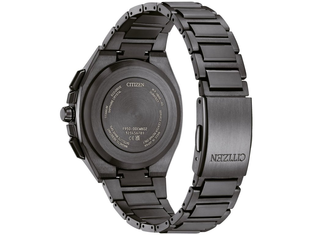 Pouzdro z titanu ve stejné barvě má průměr 44 milimetrů. Černý texturovaný číselník se stopkami, zobrazením času ve 24hodinovém formátu a ukazatelem data a dne v týdnu je chráněn odolným safírovým sklíčkem s antireflexní vrstvou. Ručičky a indexy disponují luminiscenčním nátěrem pro lepší čitelnost za zhoršených světelných podmínek. Chod hodinek zajišťuje strojek F950 se solárním napájením, přesností ± 5 sekund za měsíc, ukazatelem stavu nabití včetně indikace slabé baterie, věčným kalendářem, budíkem a světovým časem. Tento strojek s GPS satelitním řízením času, kdy dochází ke změně času automaticky dle polohy na základě přijímaných signálů, poskytuje indikaci času až ve 40 časových zónách a 27 městech.