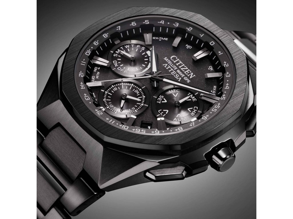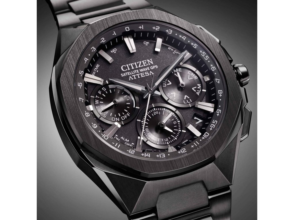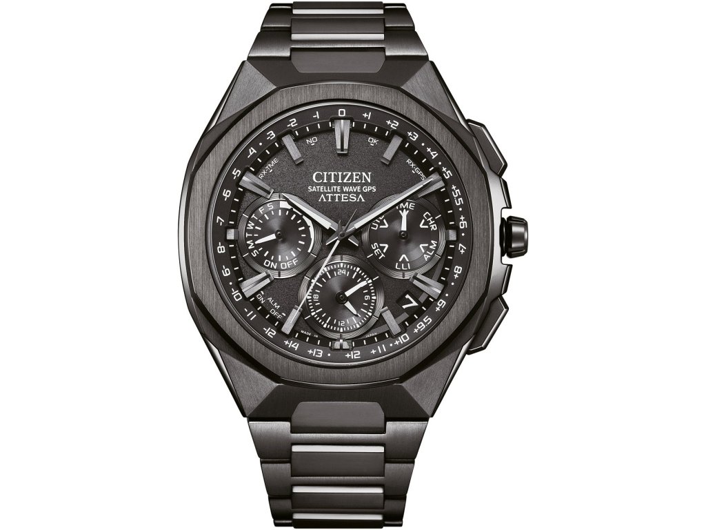 Citizen Attesa Satellite Wave GPS CC4105-69E jsou pánské sportovní solární hodinky na titanovém náramku s povrchovou DLC úpravou černé barvy a překlápěcí sponou.