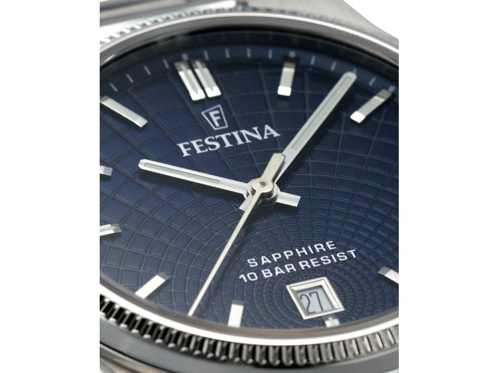 Hodinářská značka Festina byla založena ve Švýcarském La Chaux-de-Fonds v roce 1902. V roce 1984 převzal značku Miguel Rodriguez a díky začínajícímu rozmachu quartzových strojků se právě v této době začala psát nová epocha této značky.Značka Festina je částí skupiny Festina Group. Sídlo společnosti je v Barceloně a vysoce kvalitní výrobní centrum je vybudováno ve švýcarském Herbetswill.Značky Festina Group jsou uznávaným hodinářským pojmem na mezinárodní úrovni a zaujímají vedoucí postavení v oblasti středního segmentu hodinářského trhu v Itálii, Německu i ve Švýcarsku. Na francouzském a španělském hodinářském trhu zaujímá Festina Group vedoucí postavení.