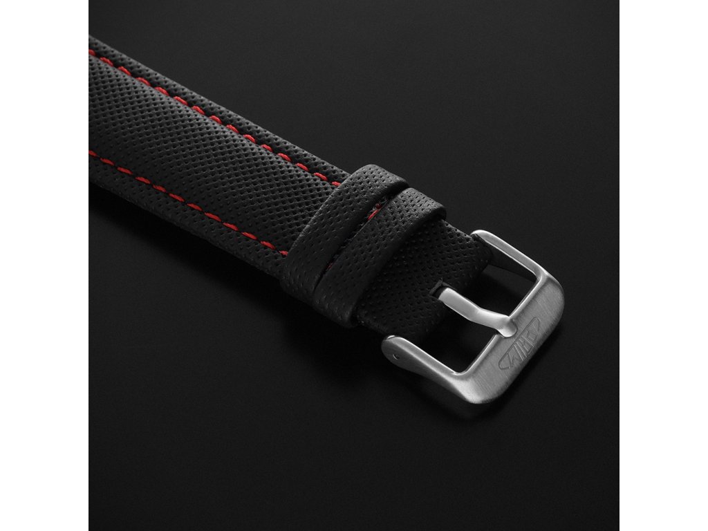 Hodinky doplňuje kvalitní kožený řemínek s prošitím, který podtrhuje jejich sofistikovaný vzhled.
