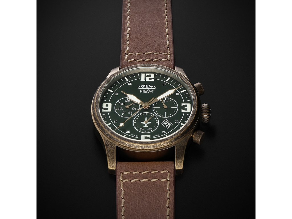 Číselníkk byl navržen s maximální pečlivostí – nabízí výrazné luminiscenční indexy, které zajišťují perfektní čitelnost i za zhoršených podmínek. V jeho středu zaujme silueta ikonického československého cvičného letounu L-39 Albatros, který jako by se vznášel mezi subčíselníky. Nechybí ani tradiční nápis PILOT s motivem příčného sklonoměru, typickým pro letecké přístroje.