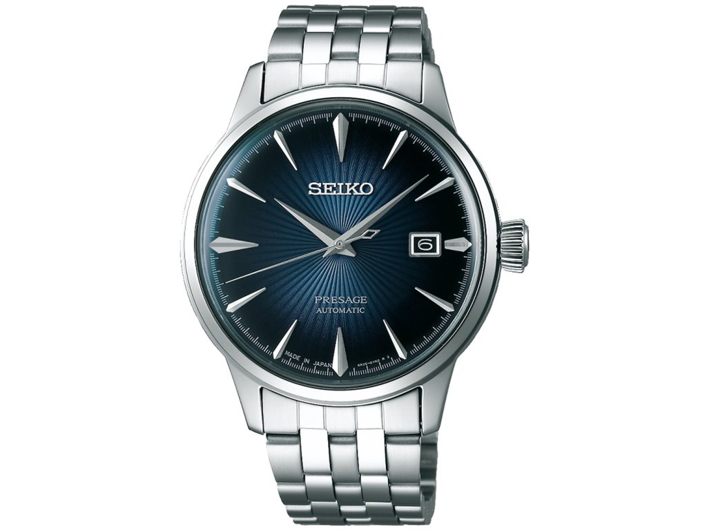 Pánské automatické hodinky Seiko Presage Cocktail Time na kovovém řemínku s překlápěcí sponou.
