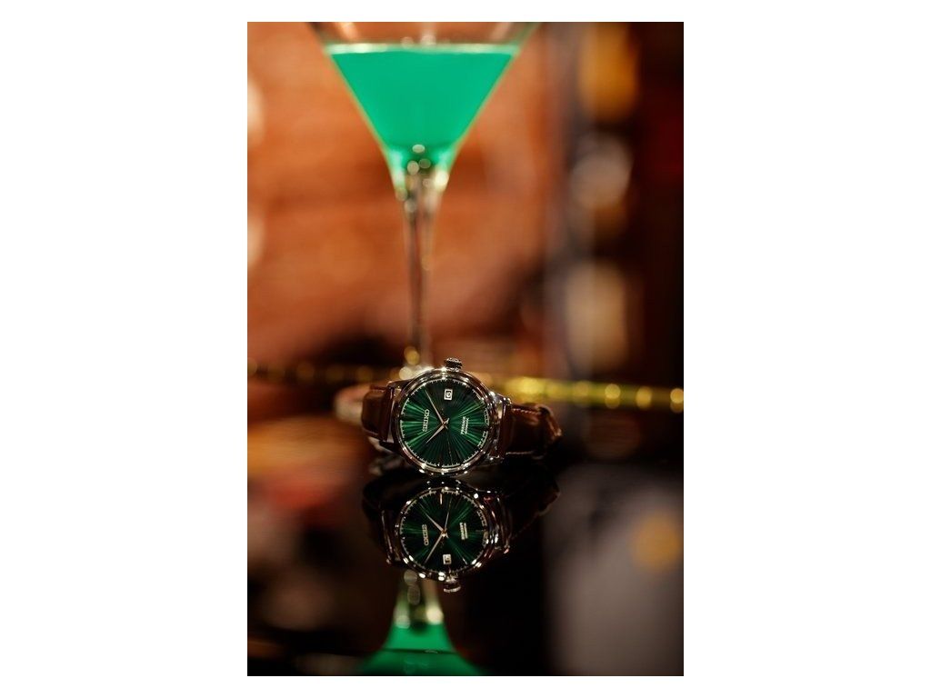 Pouzdro z nerezové oceli má průměr 40,5 milimetru a průhledné zadní dýnko. Texturovaný tmavě zelený číselník s indikací data je kryt odolným zakřiveným sklem Hardlex. Design číselníku je inspirován odstínem koktejlu Mockingbird. Aplikované hodinové indexy doplňuje sekundová ručka v kontrastní zlaté barvě. Pohon hodinek zajišťuje mechanický strojek 4R35 s automatickým nátahem a rezervou chodu přibližně 41 hodin. Tento manufakturní strojek s funkcí hackingu lze v případě potřeby natahovat i ručně pomocí signované korunky.