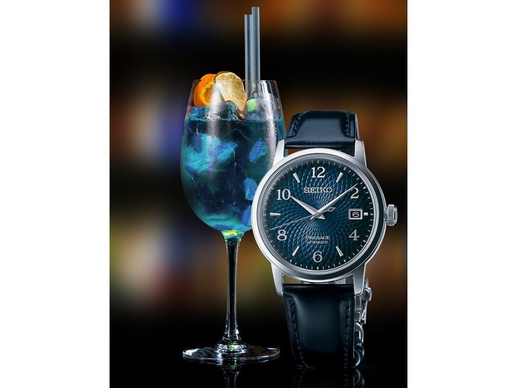 Pouzdro z nerezové oceli s kombinací matování a lesku má průměr 38,5 milimetru a průhledné zadní dýnko. Texturovaný tmavě modrý číselník s indikací data společně se zakřiveným sklem Hardlex vytváří poutavý efekt, umožňující hodinkám zajímavou hru se světlem. Design číselníku je inspirován barvami koktejlu Old Clock a zároveň broušeným povrchem koktejlových sklenic. Aplikované hodinové indexy jsou střídavě vyvedeny v arabských číslicích v kontrastní stříbrné barvě. Pohon hodinek zajišťuje mechanický strojek 4R35 s automatickým nátahem a rezervou chodu přibližně 41 hodin. Tento manufakturní strojek s funkcí hackingu lze v případě potřeby natahovat i ručně pomocí signované korunky.