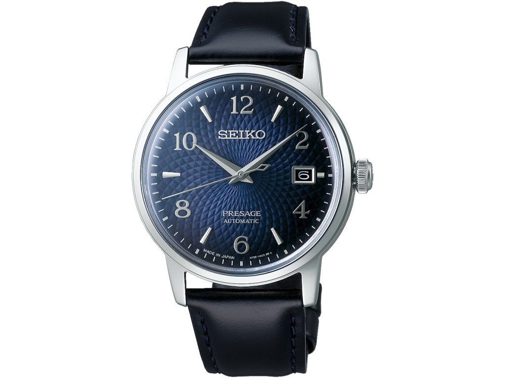 Pánské automatické hodinky Seiko Presage Cocktail Time Old Clock na koženém řemínku s překlápěcí sponou.