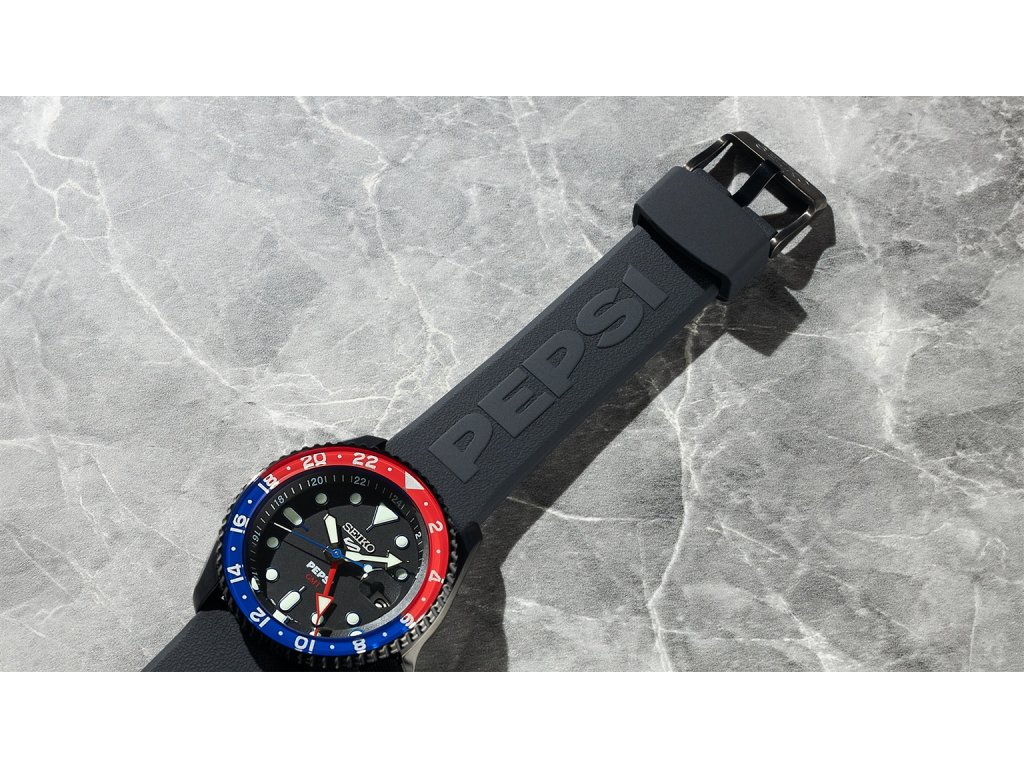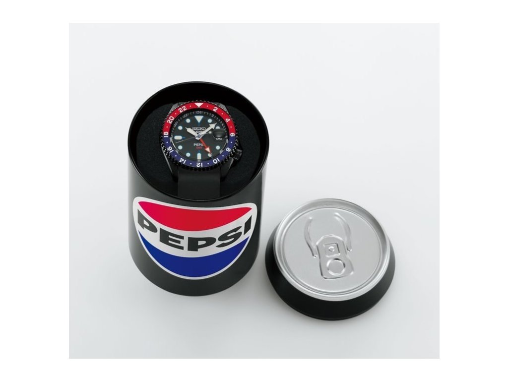Jsou to první GMT hodinky ze série SKX se silikonovým řemínkem. Tento černý silikonový řemínek navíc zdobí embosovaný nápis „PEPSI“ na vrchní části (od pozice 12. hodiny) a logo Pepsi na spodní špičce druhého dílu řemínku. Pouzdro z nerezové oceli s černou povrchovou PVD úpravou vycházející z kultovního modelu SKX007 má průměr 38 milimetrů a průhledné zadní dýnko zdobené logem Pepsi. Černý číselník s červenou GMT ručkou je chráněn odolným sklem Hardlex s lupou nad aperturou data. Aplikované hodinové indexy jsou stejně jako ručky pokryty luminiscenčním nátěrem LumiBrite, který garantuje perfektní čitelnost za zhoršených světelných podmínek. Hodinky jsou vybaveny jednosměrně otočnou lunetou s hliníkovou vložkou v barvách Pepsi s 24hodinovou stupnicí. Pohon hodinek zajišťuje mechanický strojek 4R34 s automatickým nátahem a rezervou chodu přibližně 41 hodin. Tento manufakturní strojek s funkcí hackingu lze v případě potřeby natahovat i ručně pomocí korunky.
