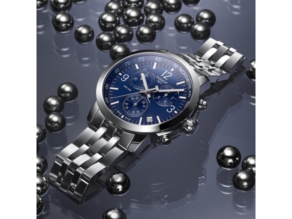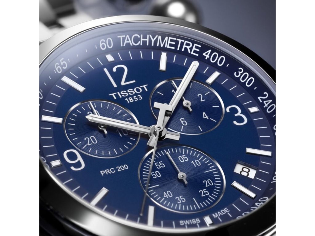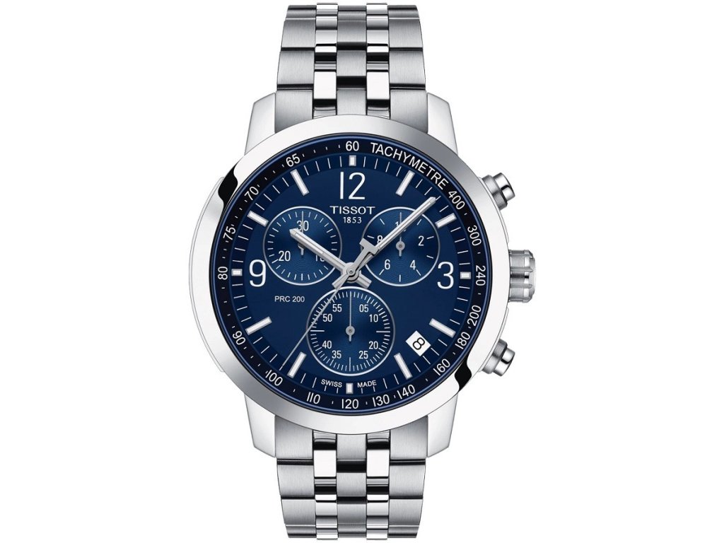 Tissot PRC 200 Chronograph T114.417.11.047.00 jsou pánské sportovní hodinky na ocelovém náramku v kombinaci brusu a lesku s překlápěcí sponou.