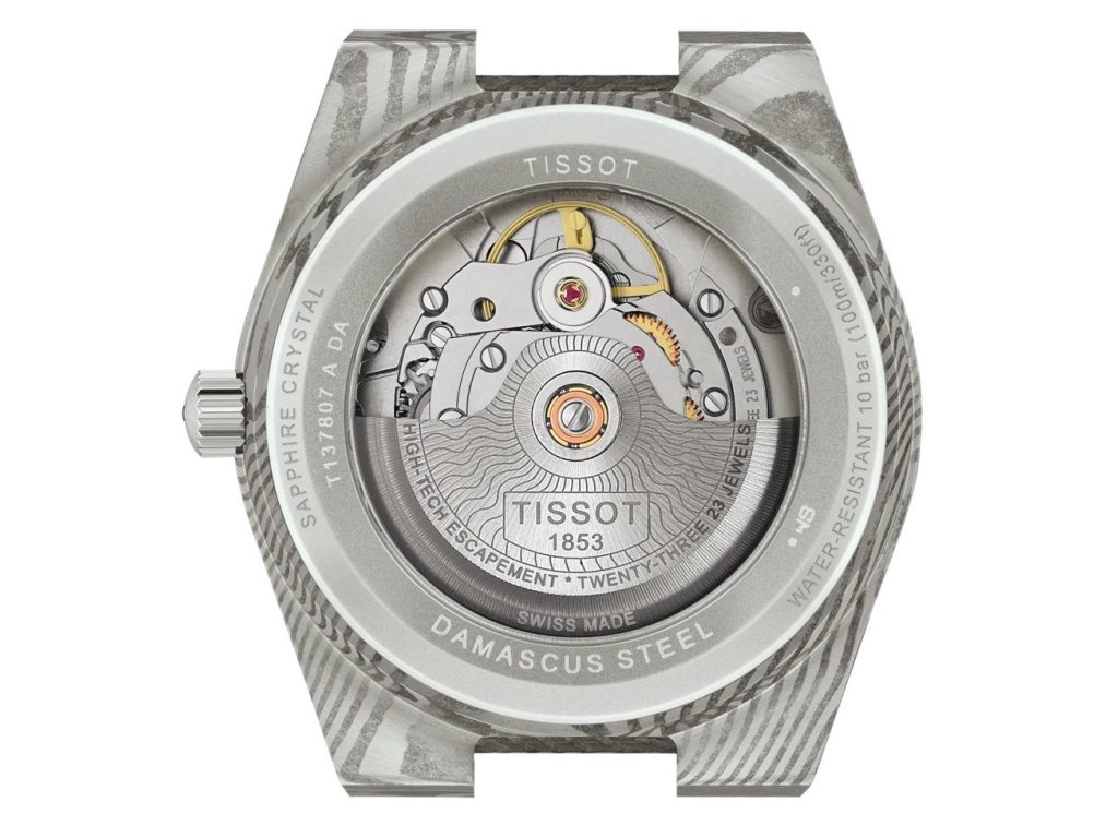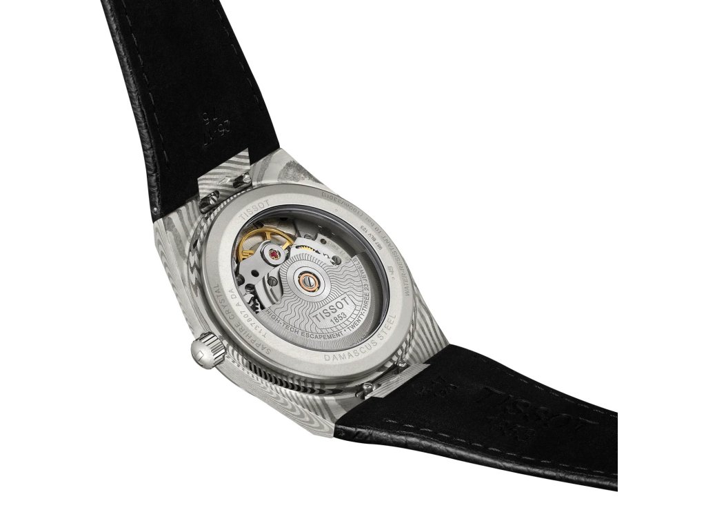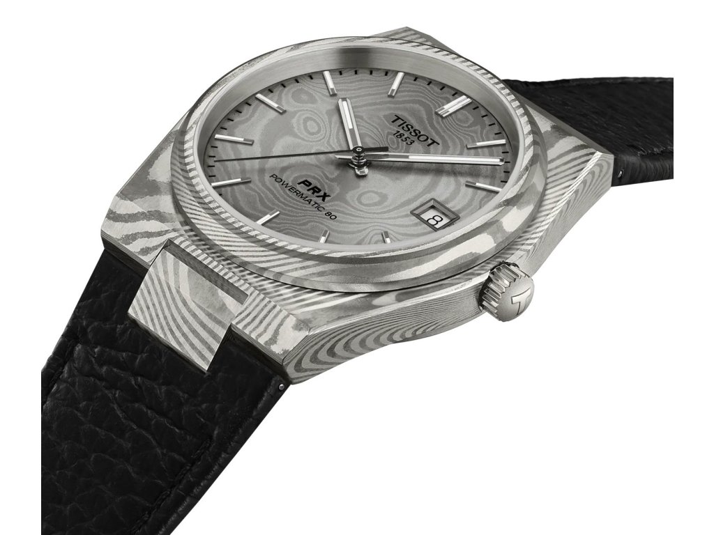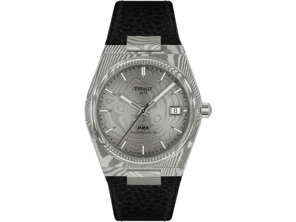 Tissot PRX Powermatic 80 Damascus Steel T137.807.96.081.00 jsou automatické elegantní unisex hodinky na integrovaném černém koženém řemínku s trnovou sponou.