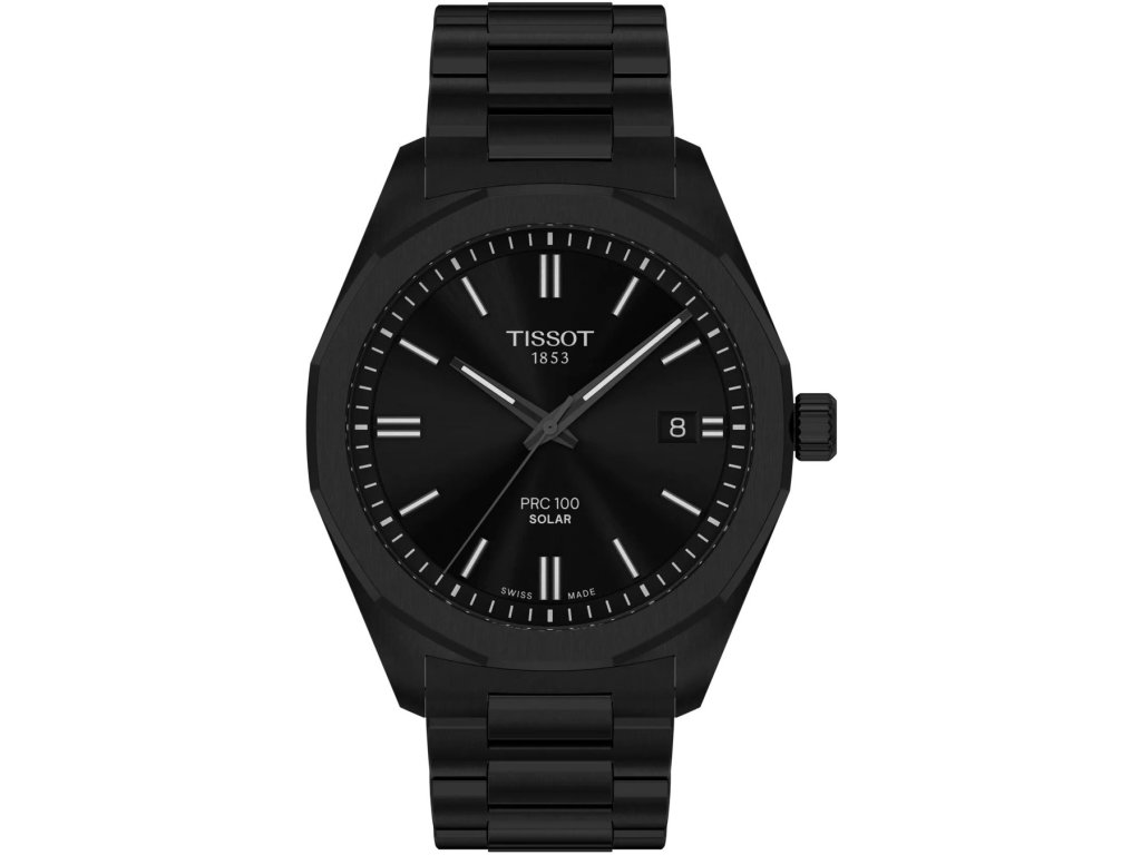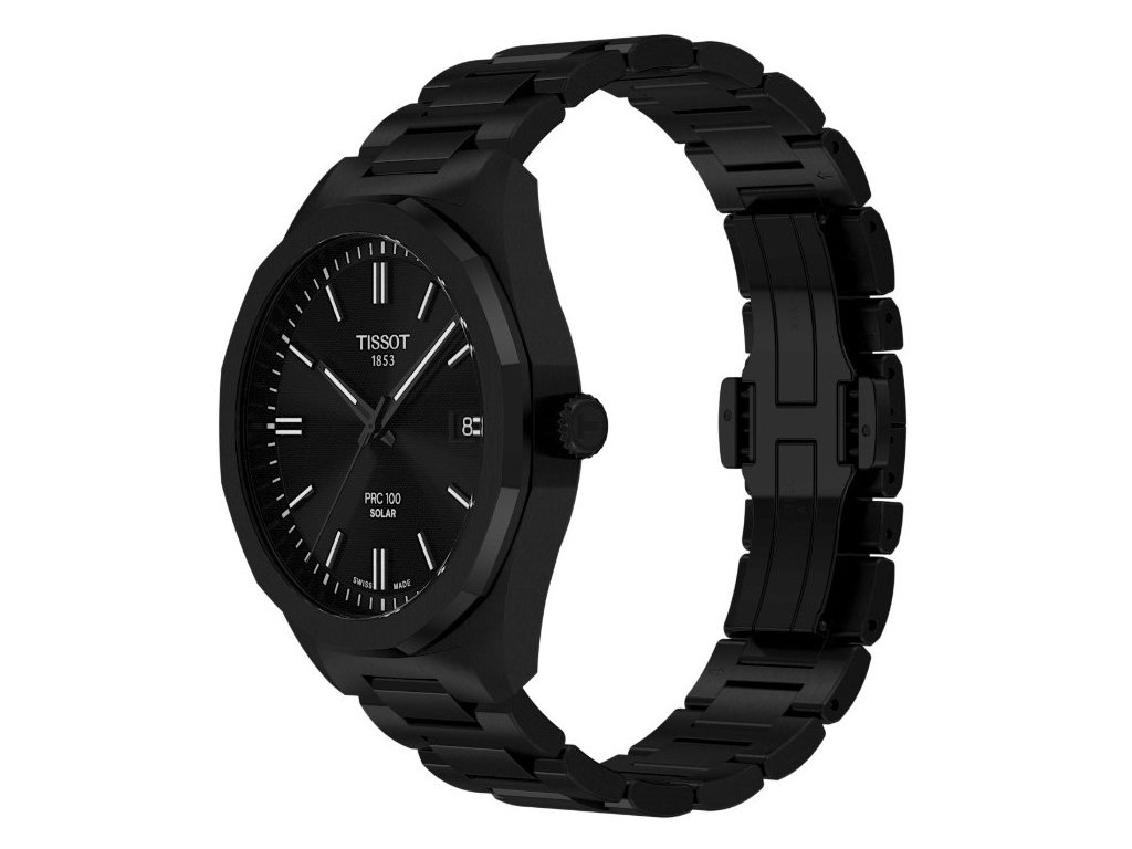 Tissot PRC 100 Solar T151.422.33.051.00 jsou pánské hodinky v klasickém stylu na ocelovém náramku s povrchovou PVD úpravou černé barvy a motýlkovou sponou.