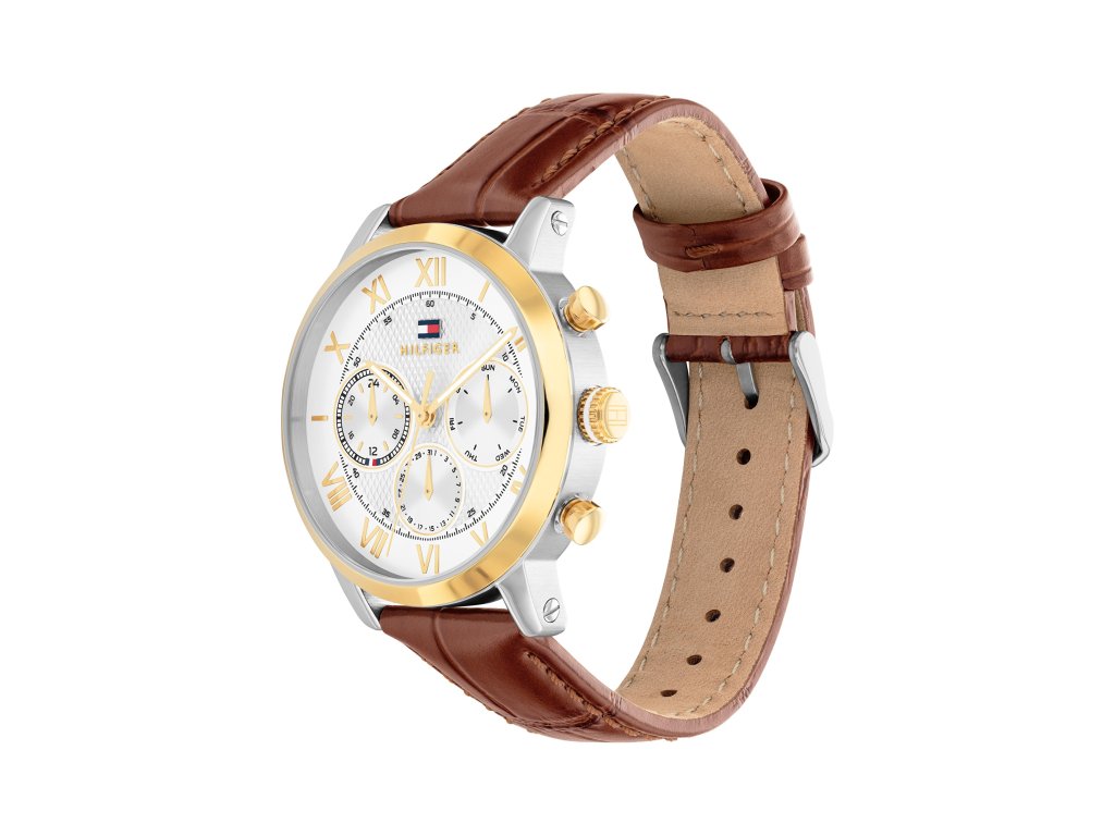 Hodinky mají pouzdro s částečnou PVD úpravou ve zlaté barvě, která dokonale ladí s číselníkem i řemínkem.